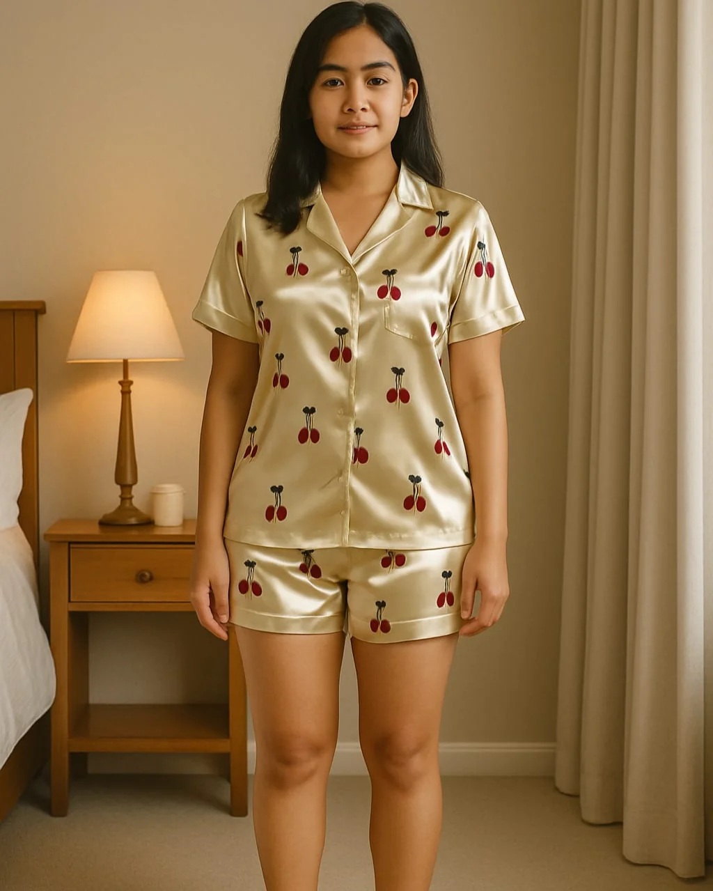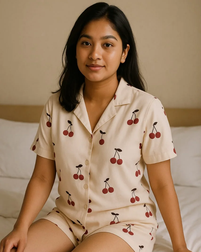 Embrace cozy elegance with our Cream Cherry Satin Short Set — a perfect blend of playful design and luxurious feel. Crafted from buttery-soft satin with a silky finish, this set is your go-to for breezy evenings and laid-back lounging in style.