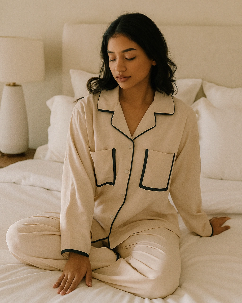 Unwind in style with this Classic Pajama Set, designed in soft and breathable cotton rayon. Featuring a button-down shirt with contrast piping and roomy pockets, paired with relaxed straight-fit pants, this set is all about comfort with a touch of sophistication. Perfect for cozy nights, lazy mornings, or simply lounging in luxury.
